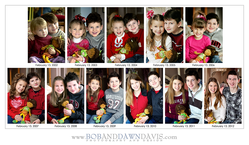 Well, here's the photo for everyone who knows us and those who may be reading this for the first time, the one we take every year on the same day, February 13th. It began with the first photo taken in 2002 at Casa de Copii, the orphanage they lived in for three and a half years. Every year on that same day, Bob takes the same photo of them with Papusheka (Alli's little doll). It was the first gift we ever gave her.