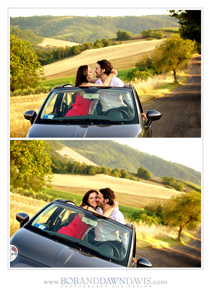 "Rolling hills, a faraway Castle in the air, a clock tower, those doors, Romeo & Juliet windows, cobblestones & shadows, the fragrance of summer, passion, laughter and intimacy, that iconic late-afternoon Italian light, and yes, a zippy, dazzling convertible. This was how we met Giulia and Marco. She’s an architect. He works for THAT car company, Fiat. And they so incredibly, warmly and openly welcomed us into their lives. Our gorgeous Italian Wedding couple. Worlds collided. So it was quite the introduction and an incredible canvas for their engagement-session to play out on, just days before their beautiful, dreamy Italian affair. Alongside mentor and maestro Bob, we looked for the light and the moments in between. Sparks flew and this is our take on how their story started…"