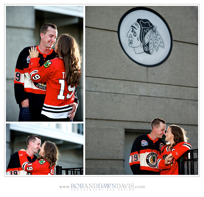 We had a blast during their engagement session! They are huge Blackhawks fans and wanted to begin their session at the United Center. Of course!!! Love it! We then stopped into