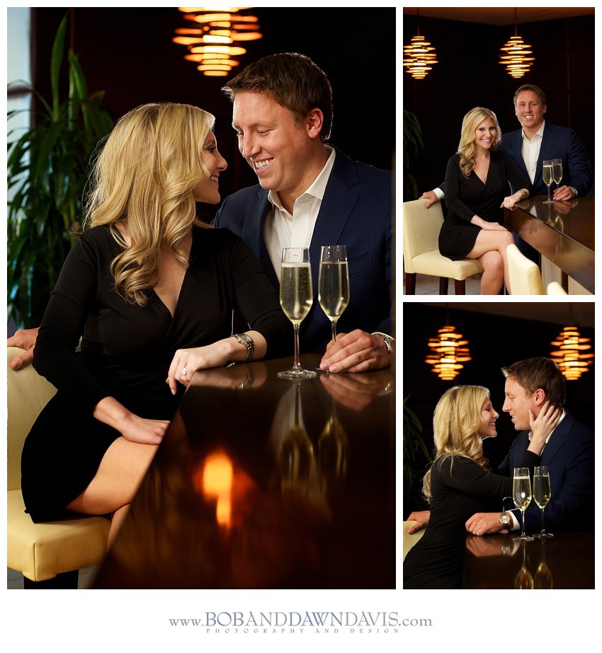 Sable Restaurant in the Palomar Hotel. A couple of cocktails always loosens up the fiancé so he can smile comfortably for the camera… say cheese! lol. Bob photographed them at the Trump and then onto the streets of Chicago for some evening shots! I always love those!