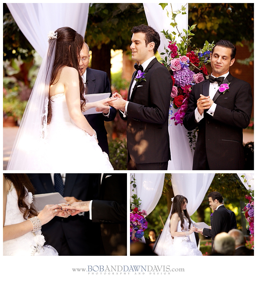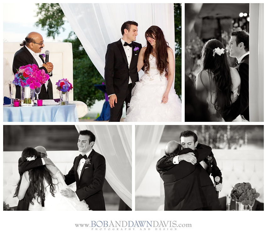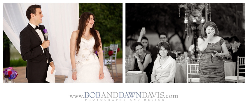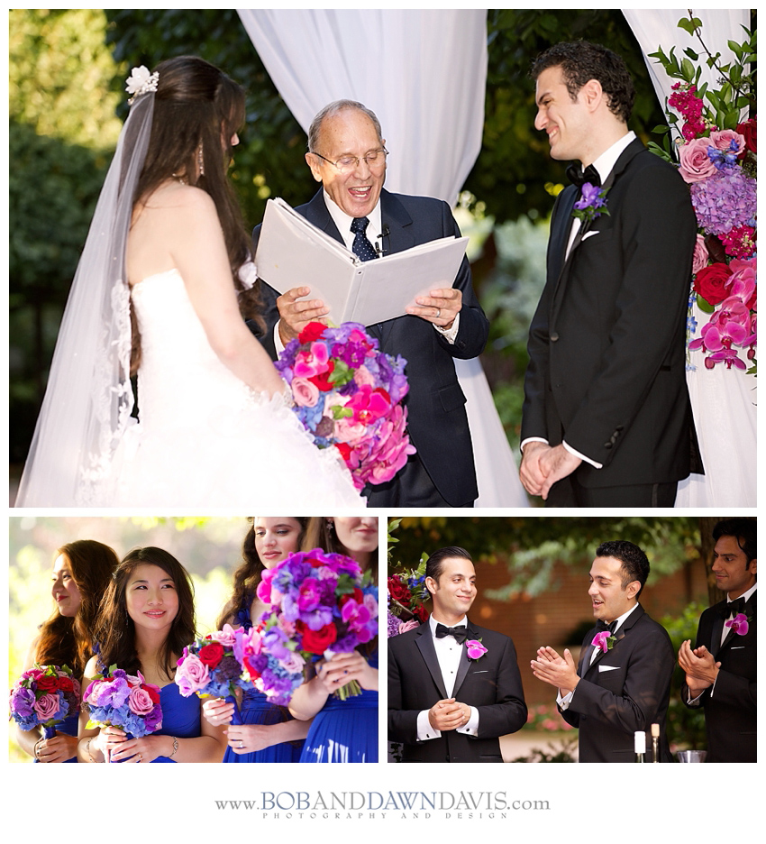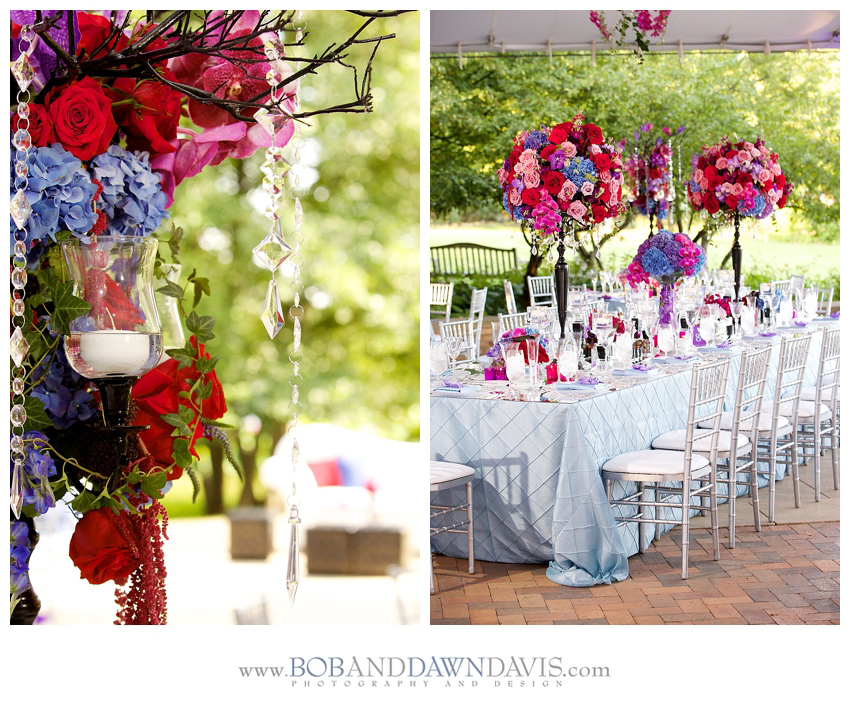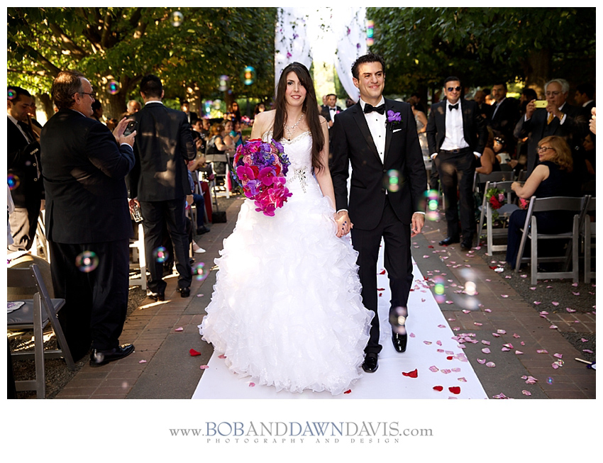 The first thing you need to do for your wedding day is hire the right event planner and that is exactly what Rocio and Cyrus did, they hired Claire Weller from Big City Bride to help her bring her ideas to reality. Claire is simply amazing and Bob loved working with her the day of the wedding. Rocio wanted a colorful wedding filled with the most amazing red, blue, pink and purple flowers throughout the entire day, and that is what she received. Studio AG Design was the Event Designers in charge of the lounge, draping, lighting and flowers... and wow did they bring it all together!!! Rocio's talented father hand painted the flowers for the table cards that were hung on a black manzanita tree with ribbon and crystals. During the reception, guests had an opportunity to write love notes to Rocio and Cyrus and hang them on the tree. Such a great idea!