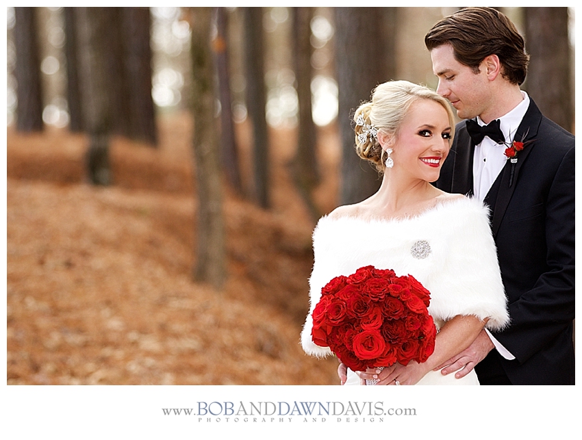 lounge furniture, not to mention the view of the lake in the background. The cocktail hour music was dedicated to Lauren's late Grandmother who loved Frank Sinatra. The food served had a southern flare including tomato soup with heart shaped grilled cheese... just incredible!!! Their winter southern wedding was romantic and classical with beautiful red roses everywhere! Their reception was in the