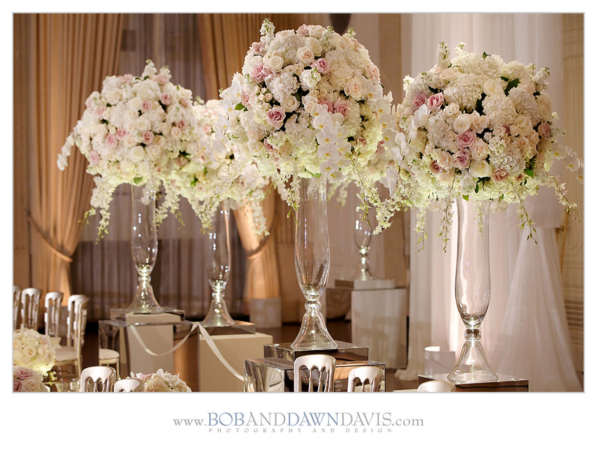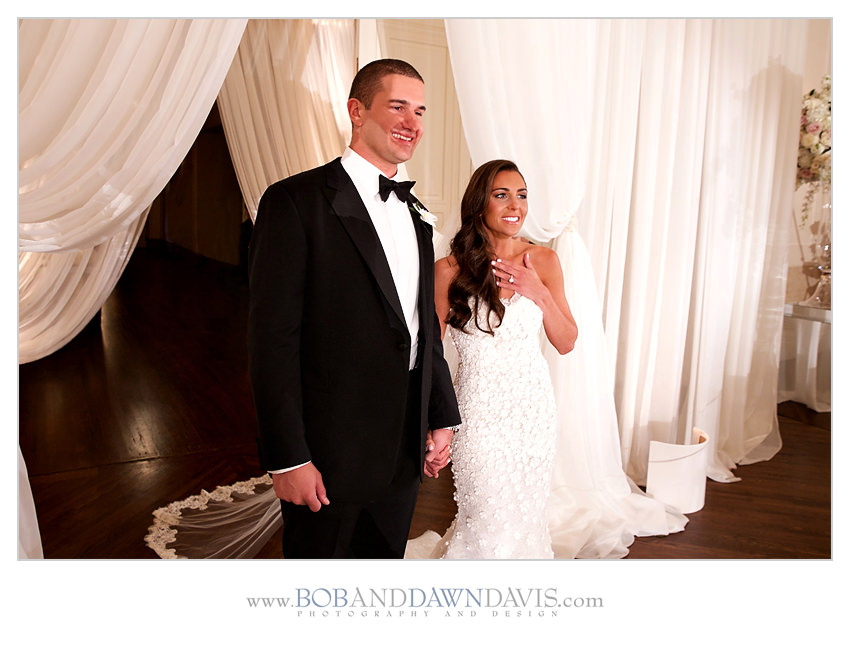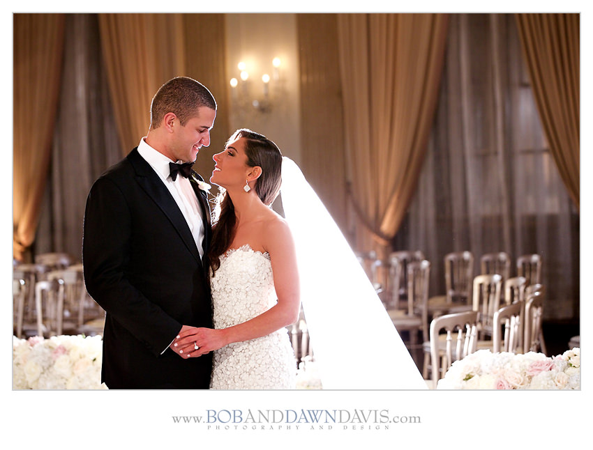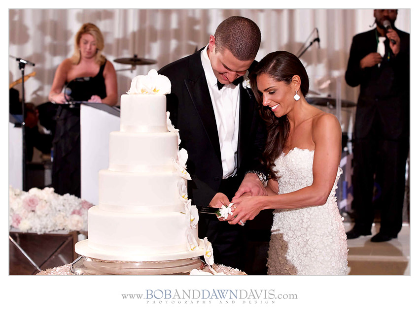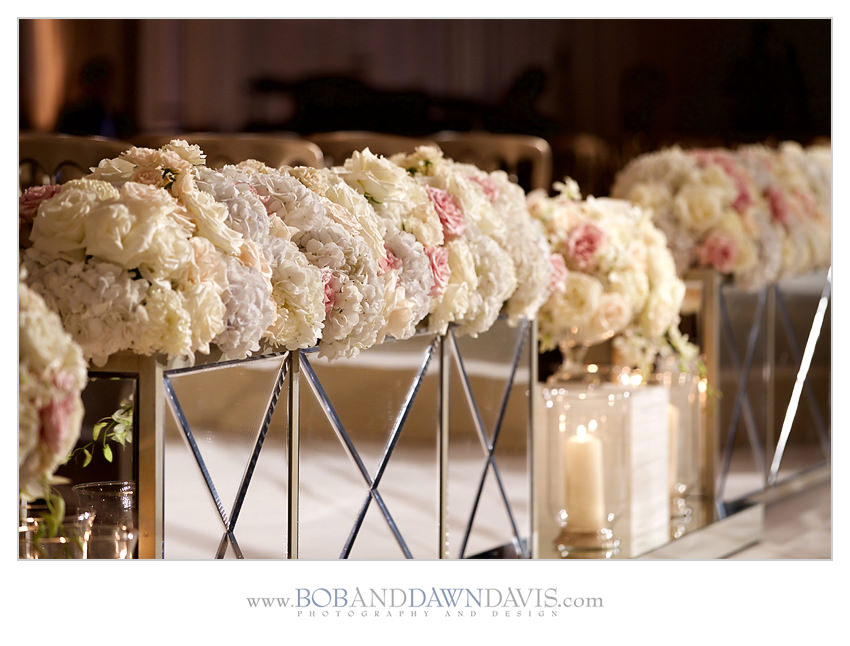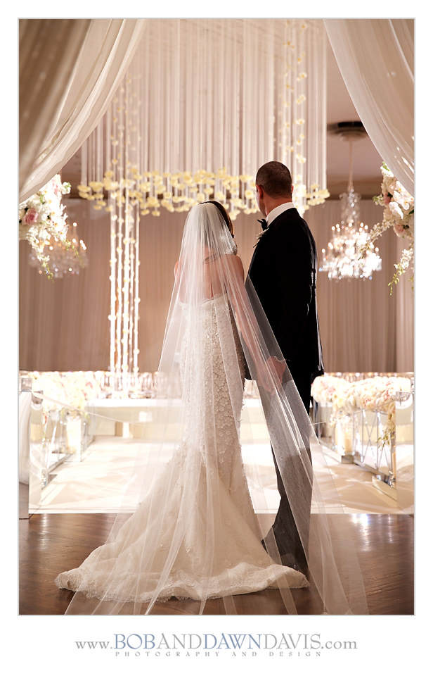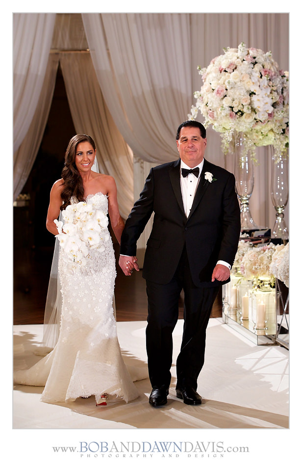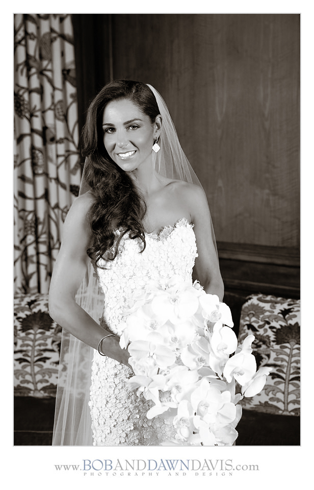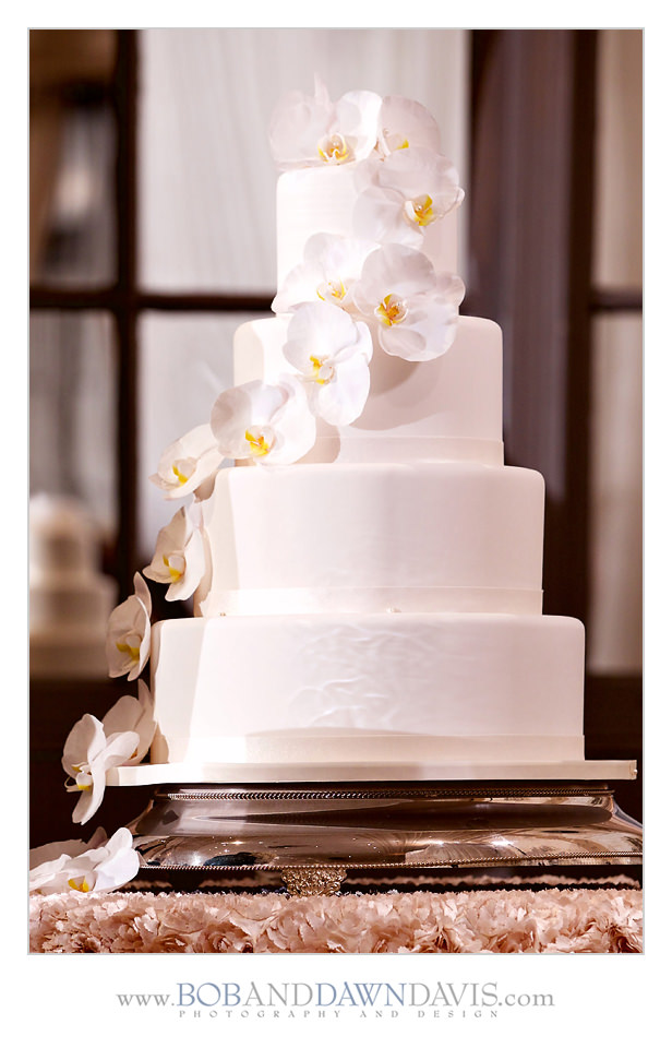Sammi and her mom both shared a love for orchids, so she had HMR Designs make a gorgeous bouquet that had white and ivory roses, with white Phalaenopsis blossoms and cascading stems in a clutch bouquet that was big and billowy.