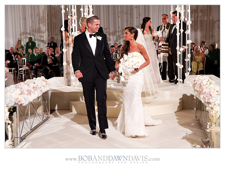 They chose to have a shorter aisle because she didn't think she could make a long walk without her mom. She decided to be married in the round, so their family and friends could surround them during the ceremony.
