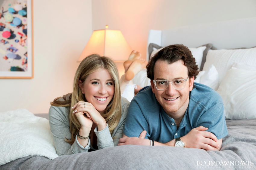 At first, Jenna and Jeremy didn't know if they wanted to do an engagement session. They definitely didn't want to go out on the town so when they said they wanted to stay home and play with their adorable puppy, Mowgli, and jump on the bed, we were like YES!!!! #supercute