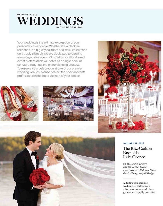 This is so fun to see Lauren Kilgore Wilson and Justin Wilson's wedding at the The Ritz-Carlton Reynolds, Lake Oconee featured in the Ritz-Carlton Magazine. Every guest at all the Ritz properties will see their beautiful wedding! So exciting! Lauren and Justin.. we're still dreaming about your dreamy wedding!