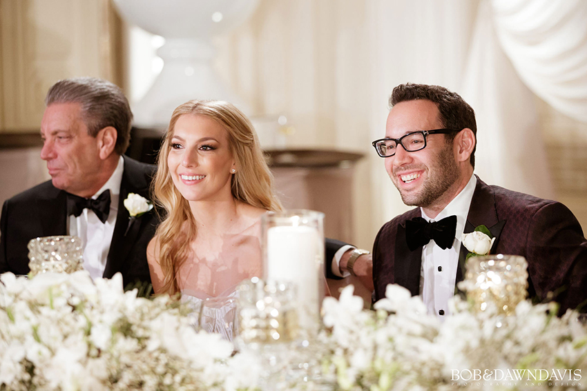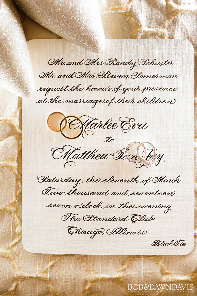 From the outstanding decor that took our breath away by Tom Kehoe and his tribe at Kehoe Designs, to the entire team that brought this wedding to fruition, there wasn't any detailed missed. Nothing! Thank you Randy and Susie for trusting us with Marlee and Mathew's wedding day... the wedding of the century! We hope that when you look through the photos it brings you back to the most amazing day ever! Much love! ~ Dawn and Bob __________ Vendor Love: Photography: Bob & Dawn Davis Photography & Design Bride: Marlee Somerman Groom: Matthew Somerman Planner: Marlee's talented dad, Randy Schuster Designer: Tom Kehoe | Kehoe Designs Venue: The Standard Club Entertainment: Larry King | Larry King Orchestra Video: Xpress Video Productions Makeup: Stella Mikhail and Jackie for Stella Hair: Nicki and Stephanie from Renee Feldman Salon Wedding Dresser: Caroline Shaw | The Wedding Dresser Gown: Mira Zwillinger Studio Purchased at : Ultimate Bride Tux: Lee Allison Linens: BBJ Linen Cookie Fries: The Cookie Joint Cake: Cake Chicago Clock Dessert: Bittersweet Pastry Shop Ketubah: Alyssa Rakel Judlo Invitation: C'est Papier |