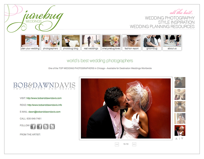 JuneBug Weddings website as one of the Top 10 Wedding Photographers in Chicago. We feel so blessed to be part of this amazing team of photographers. The